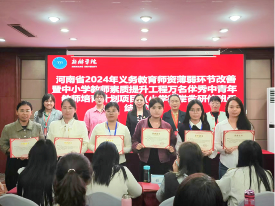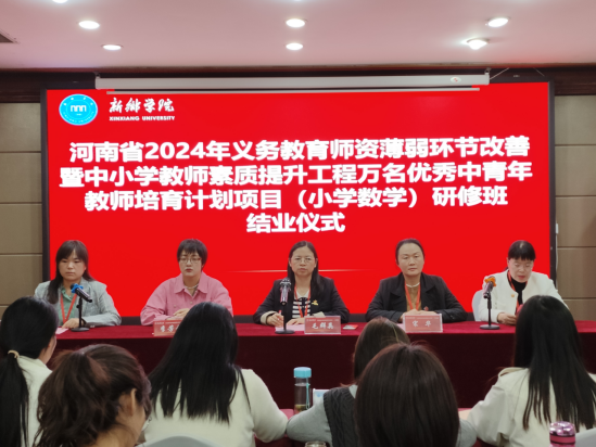 10月25日上午,由太阳官网中小学教师校长研修院承办、数学与统计学院组织实施的河南省2024年义务教育师资薄弱环节改善暨中小学教师素质提升工程——万名优秀中青年教师培育计划项目(小学数学)集中培训环节圆满结束并举行了隆重的结业仪式。122cc太阳集成数学与统计学院党委书记毛群英、122cc太阳集成中小学教师校长研修院副院长宋华、新乡市新区小学教务处主任李芳芳、项目工作组全体成员以及来自许昌、漯河、信阳地市的50名参训教师参加了结业仪式。