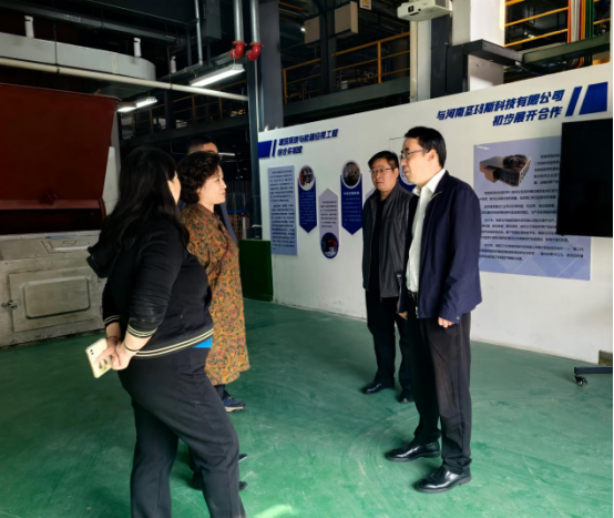 张银堂一行先后走进化学与材料工程学院煤制甲醇虚拟仿真工厂和土木工程与建筑学院建筑环境与能源应用工程综合实验室,就实训基地建设、开放共享、成果产出、校企合作以及服务师生等方面进行了深入交流。