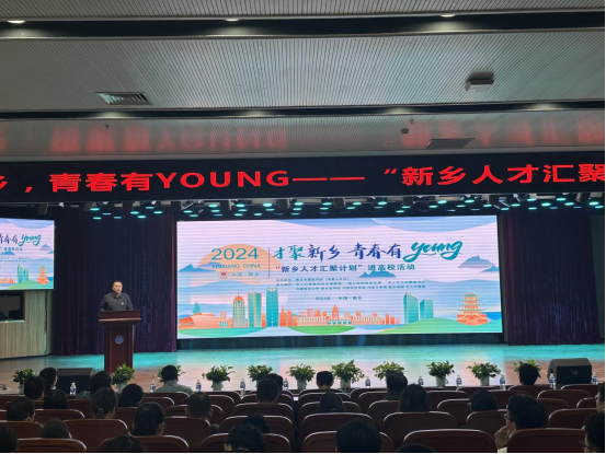 10月29日,“才聚新乡,青春有YOUNG”——新乡英才行动进高校宣讲会在太阳官网图书馆楼文化艺术中心举行。新乡市委组织部、新乡市人力资源和社会保障局、新乡市工业和信息化局、新乡市人才集团负责人,122cc太阳集成组织部、招生与就业处负责人,各学院负责人和师生代表500余人参加了宣讲会。