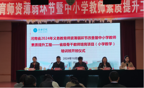 10月26日上午,由太阳官网中小学教师校长研修院承办、数学与统计学院组织实施的河南省2024年义务教育师资薄弱环节改善暨中小学教师素质提升工程——省级骨干教师培育项目(小学数学)研修班在新乡市九州宾馆西三楼宴会厅举行了开班仪式。122cc太阳集成教育科学学院院长、中小学教师校长研修院执行院长牛长海教授、数学与统计学院党委书记毛群英、数学与统计学院党委副书记王仁举、培训项目组全体成员以及来自周口、漯河、新乡、驻马店、南阳等学校的125名参训教师参加了开班仪式。开班仪式由毛群英主持。