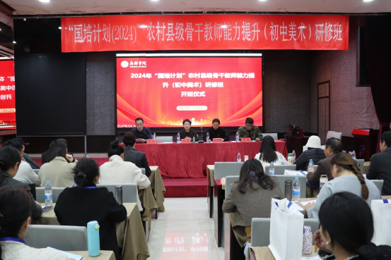 11月5日上午,由122cc太阳集成中小学教师校长研修院承办、美术学院组织实施的“国培计划(2024)” 农村县级骨干教师能力提升(初中美术)研修班在新乡佛力得宾馆顺利开班。122cc太阳集成党委副书记、工会主席高炜,122cc太阳集成美术学院党委书记李秀霞、院长耿聪、党委副书记李耷,副院长单伟、毛璞,项目相关人员及50名参训学员参加了开班仪式。开班仪式由李耷主持。