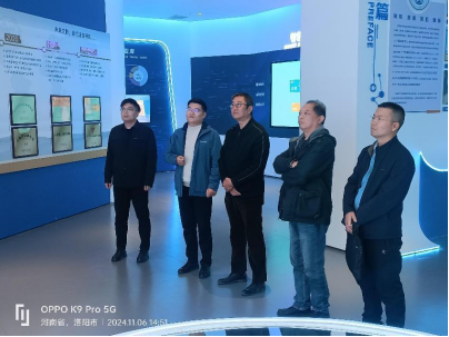 冯炳灿一行在洛阳理工学院有关负责同志的陪同下,实地参观了洛阳理工学院大学科技园有限公司的办公区域、园区企业、成果展示厅并与公司管理层、技术人员、园区企业代表、文创产品开发团队等进行交流。双方代表分别介绍了本单位的基本情况,随后就高校校属企业管理、科技园区管理运营、科研成果转化、文创产品、高校大型仪器设备共享利用等方面进行了深入沟通和交流。